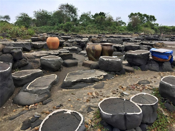 洋浦千年古盐田-流传千年的古石槽晒盐。
