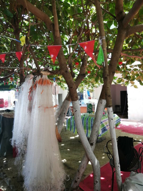 绿树成荫下的渔网