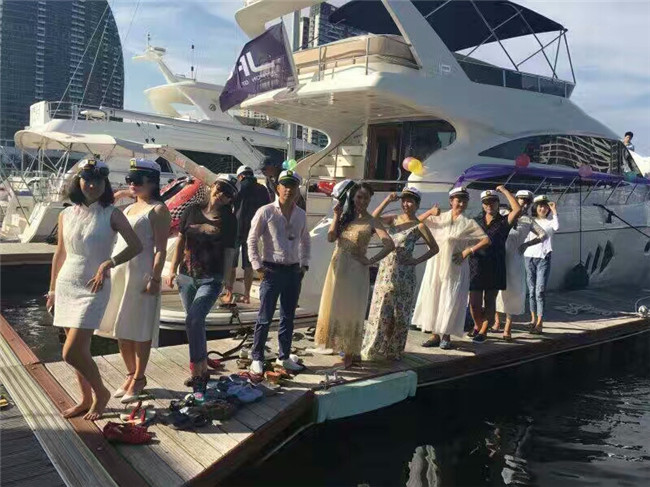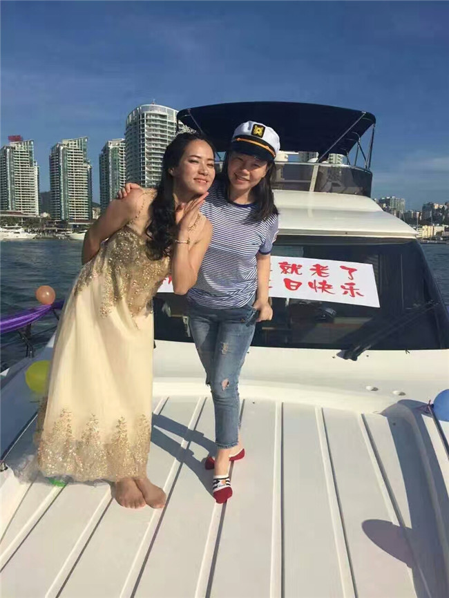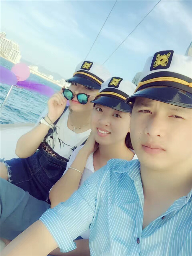 汪涵杨乐乐在三亚坐游艇出海过生日